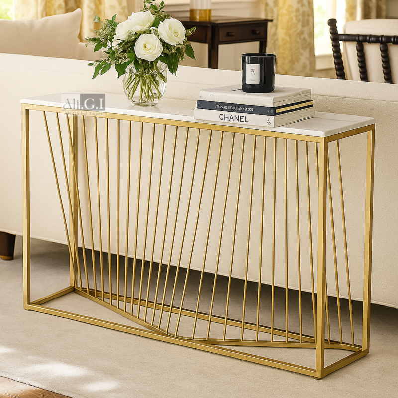 Ali.G.I-White Top Console Table with Slim Gold Frame (AGI-428)