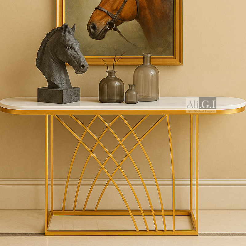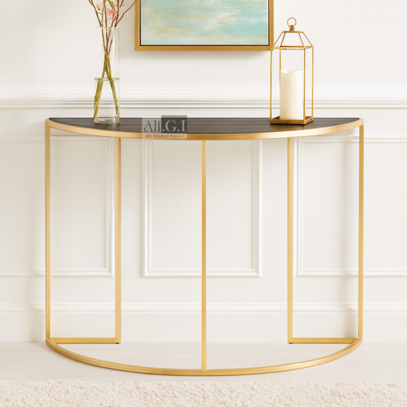 Ali.G.I-Half-Moon Console Table with Gold Frame (AGI-427)