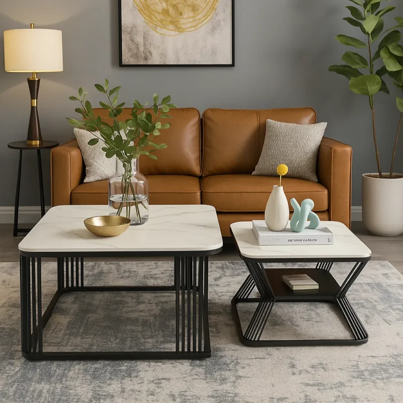 Ali.G.I-Marble Top Metal Frame Coffee Table Set (AGI-478)