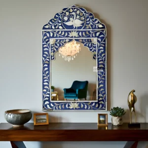 Ali.G.I-Royal Blue Floral Inlay Arch Wall Mirror Décor (AGI-496)
