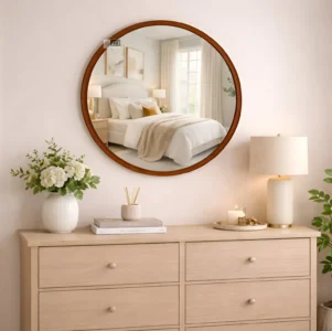 Ali.G.I-Round Walnut Wooden Wall Mirror for Living Room (AGI-791)