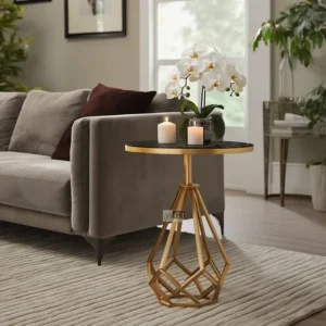 Ali.G.I-Gold Frame Console Table with White Marble Top (AGI-429)