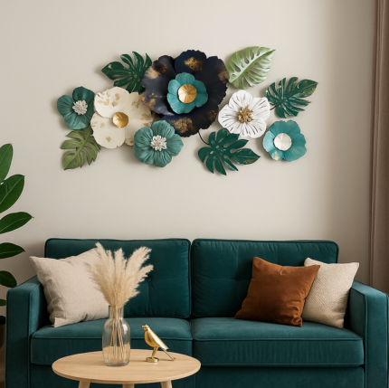 Ali.G.I-Floral Fusion–White & Blue Metal Wall Accent (AGI-348)