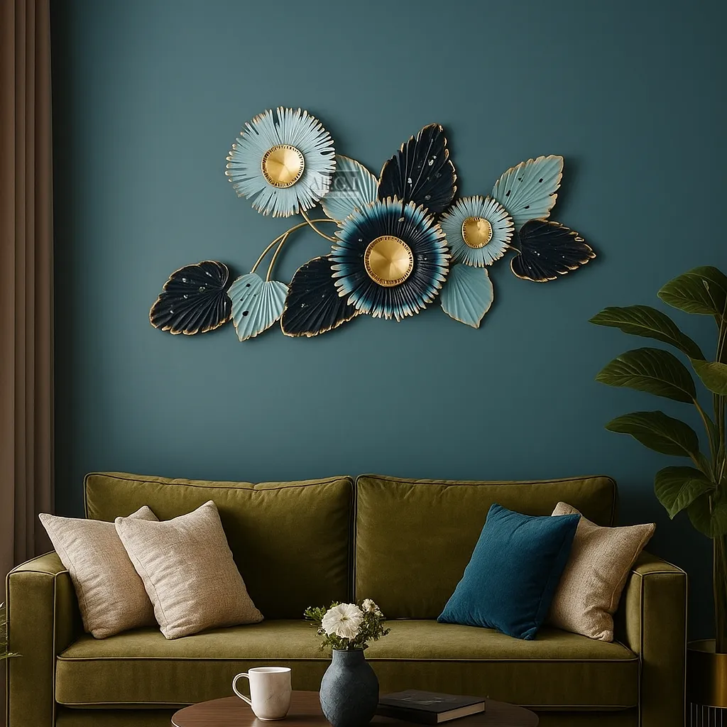 Ali.G.I-Gold & Teal Floral Metal Wall Art for Lounge Decor (AGI-486)