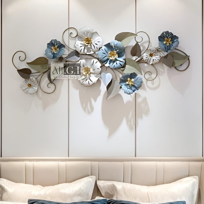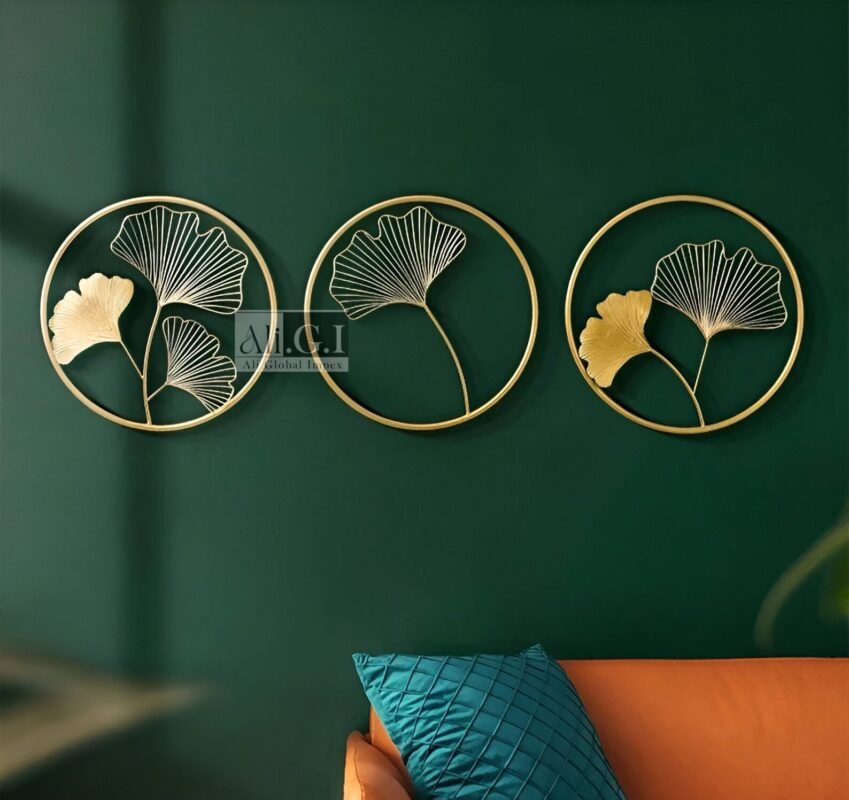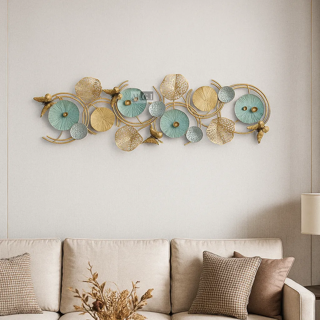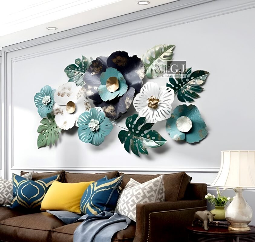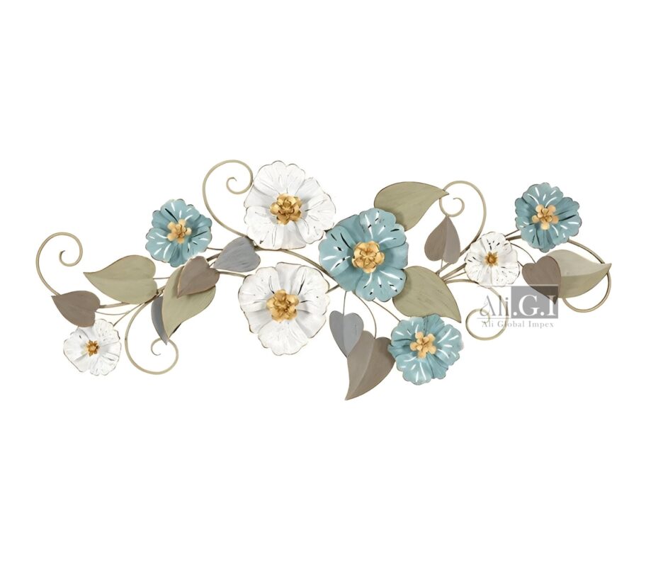 Ali.G.I-Gold & Teal Floral Metal Wall Art for Lounge Decor (AGI-486)