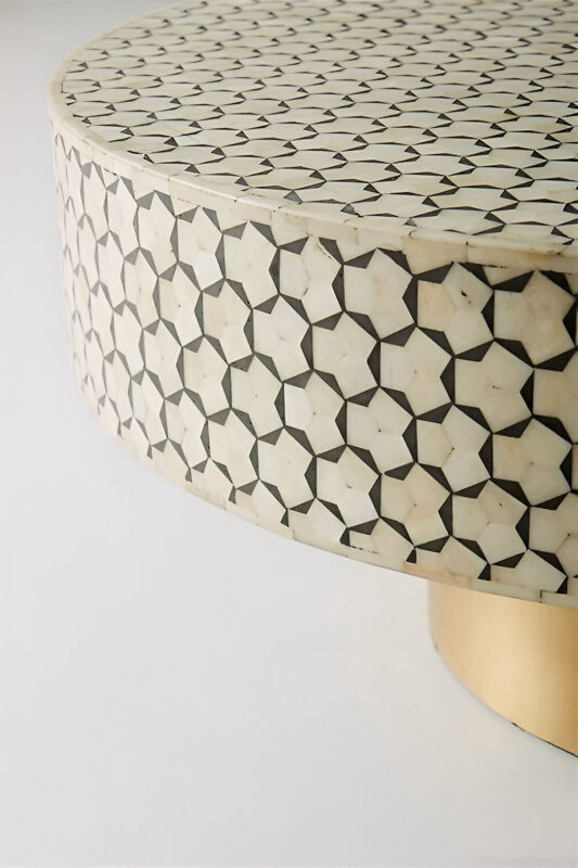Rich green and ivory inlay handcrafted in intricate geometric patterns for a statement look.