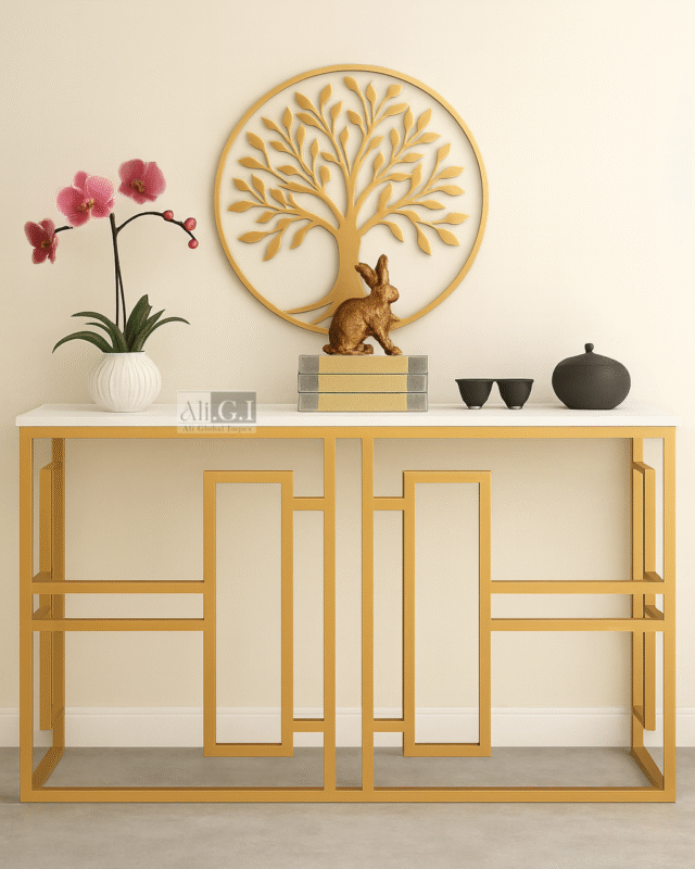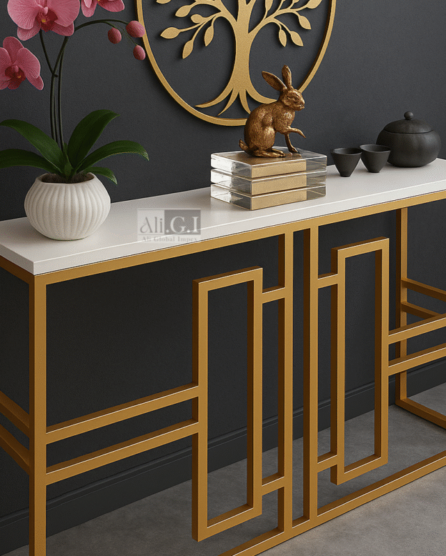 Ali.G.I-Gold Frame Console Table with White Marble Top (AGI-429) Original price was: ₹31,999.00.Current price is: ₹16,999.00.Piece Including GST