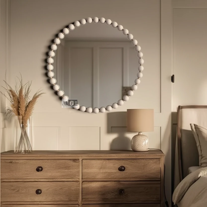 Add timeless elegance to your home with this 24 inch round bobble wall mirror in a beautiful white finish. Featuring a playful beaded frame design, this decorative mirror blends modern charm with classic sophistication. Perfect for bathrooms, entryways, bedrooms, or living rooms, it brightens spaces while adding depth and style. Crafted for both functionality and décor appeal, its unique bobble border creates a statement look that complements minimalist, coastal, and contemporary interiors beautifully.