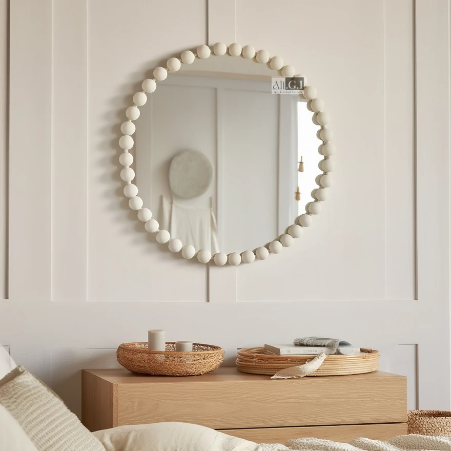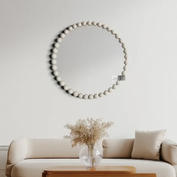 Ali.G.I- Round White Bobble Decorative Wall Mirror 24×24″ (AGI-499)