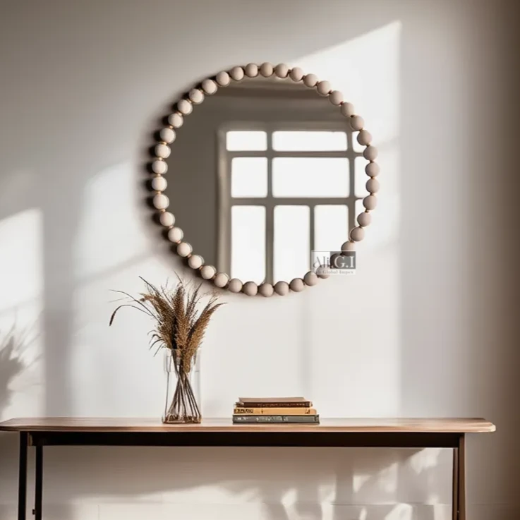 Desc : Beaded Round Wall Mirror 24 inch