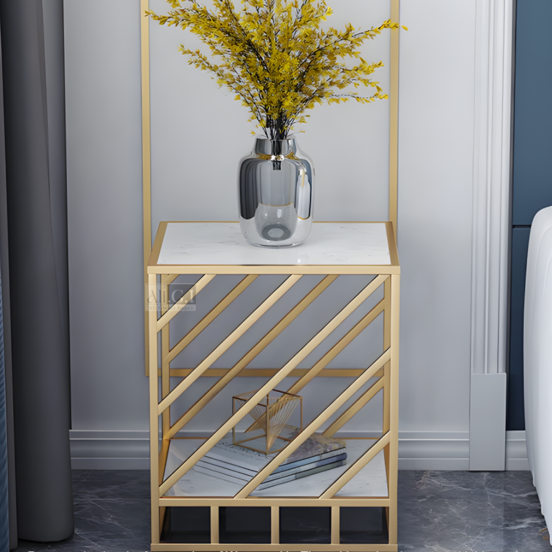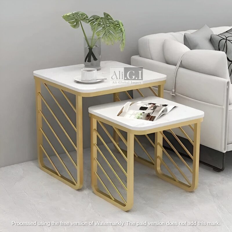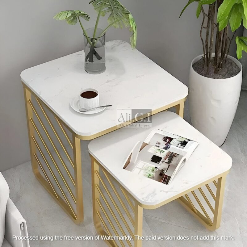 - Elegant Design: Gold metal frame paired with smooth white marble tops for a luxurious and contemporary look.