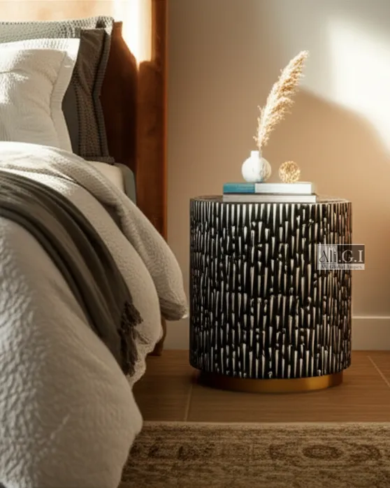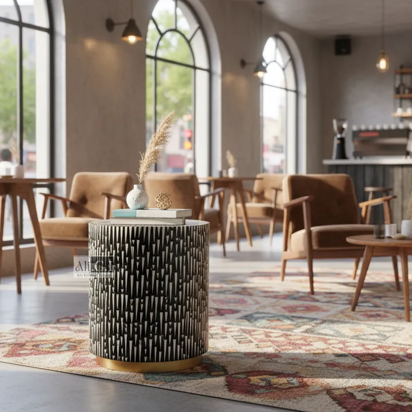 Chromatic Drum Side Table with Geometric Design – Ali.G.I
