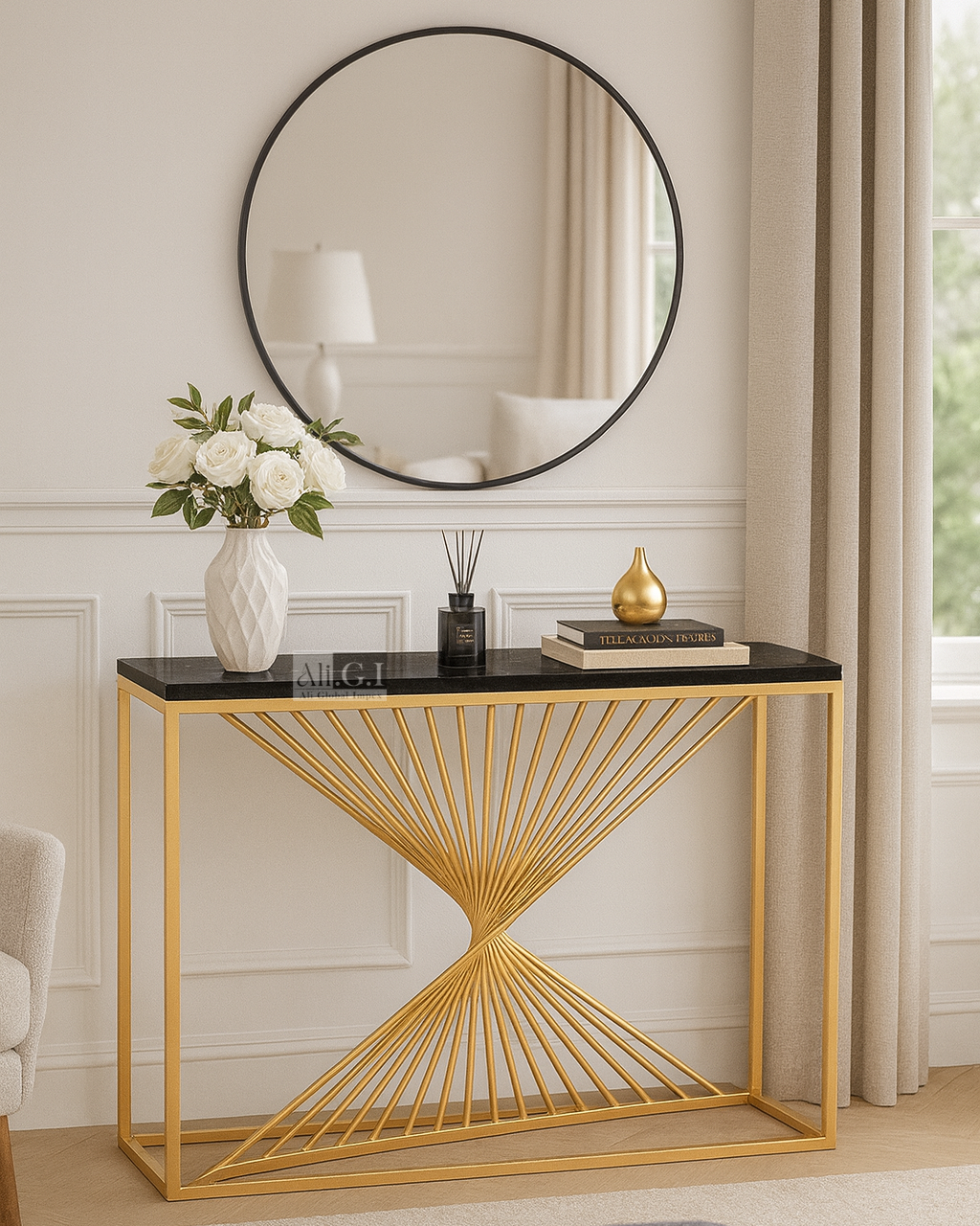 Ali.G.I-Kalós Console Table with Black Marble Top (AGI-368) Original price was: ₹31,999.00.Current price is: ₹18,999.00.Piece Including GST