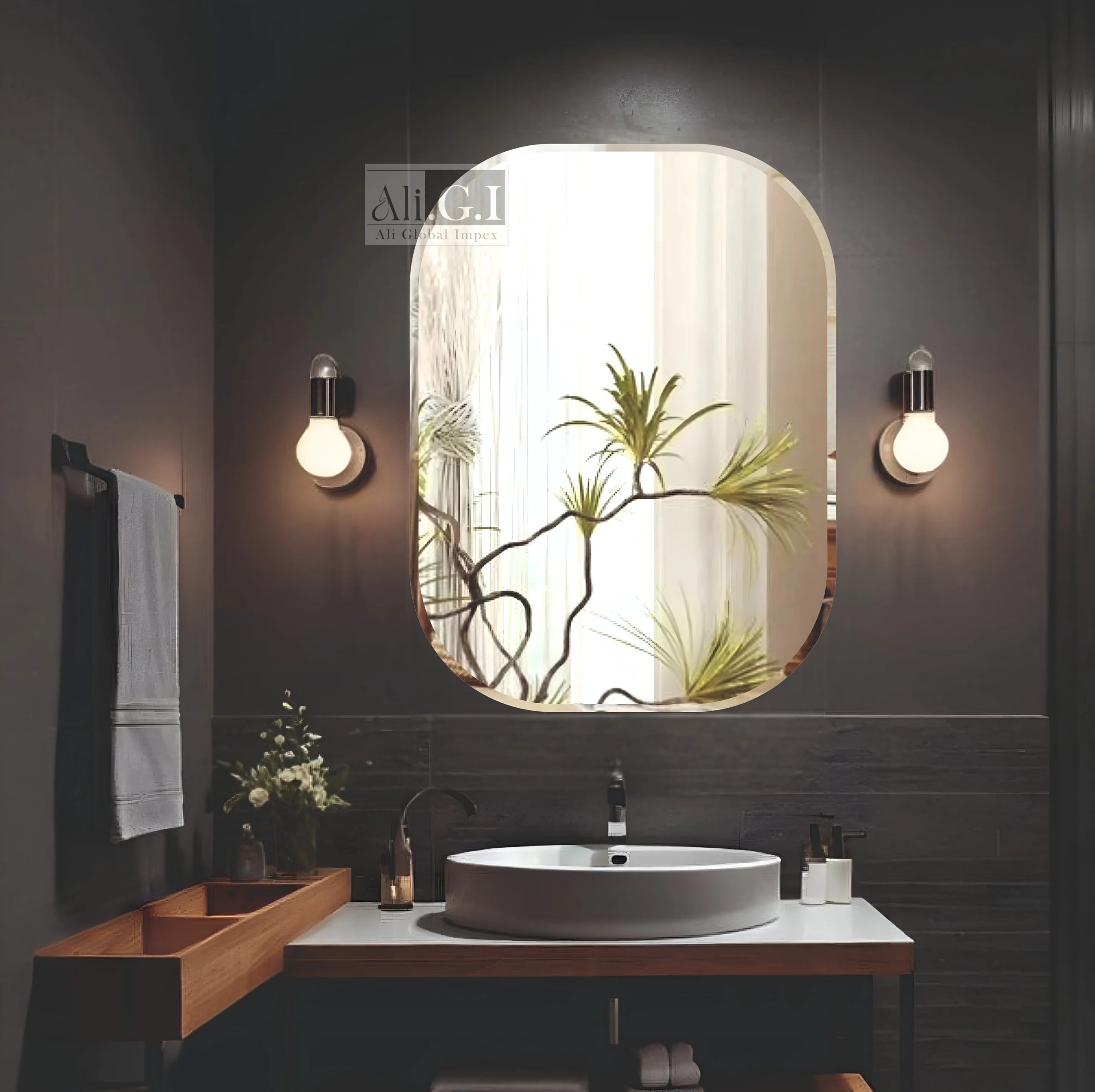 Elevate your bathroom ambiance with the Ali.G.I beveled rectangular mirror, designed with softly rounded corners and a sleek frameless look. This mirror complements natural wood, earthy tones, and contemporary setups with ease. The beveled edges subtly catch the light, adding a gentle touch of elegance. Ideal for modern vanities and serene spaces, it blends minimalism with functionality, offering a crystal-clear reflection that enhances depth and brightness.